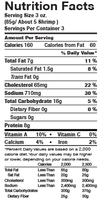 Plump and juicy on the inside, and crispy on the outside, Matlaw’s premium Southern Country Fried Breaded Shrimp is seasoned with a flavorful and original blend of southern spices. This restaurant style shrimp is unique in the breaded shrimp category. Available in a 9 oz carton.