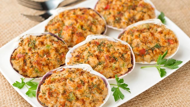Remove clams from tray and place on baking sheet into a preheated 450°F oven. Cook for 30 minutes. Serve hot!
